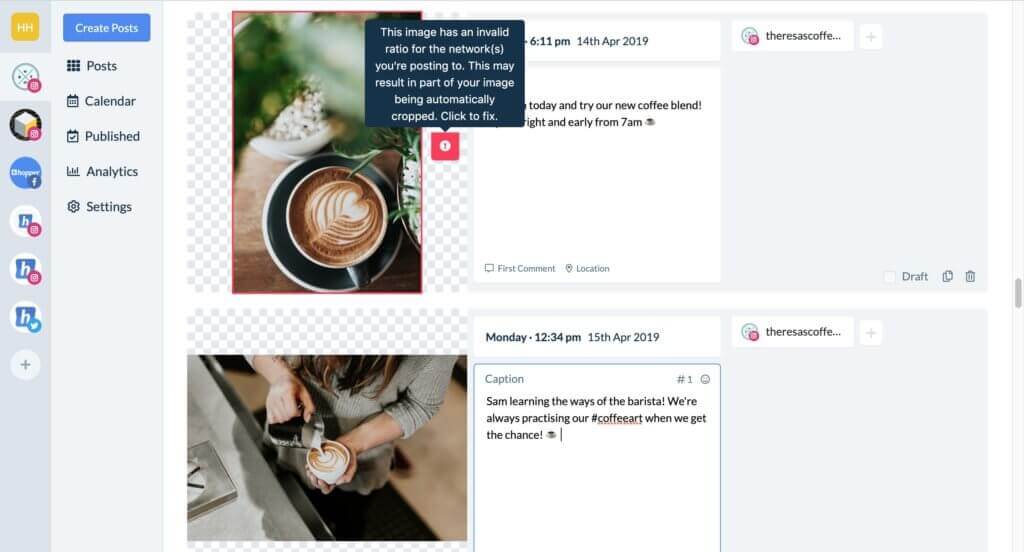 پست‌های شما در نمای Posts و Calendar، قابل مشاهده هستند. با کشیدن و رها کردن نیز می‌توانید تغییرات موردنظر خود را اعمال کنید. تقویم Hopper HQ به شما این امکان را می‌دهد که در هنگام زمان‌بندی پست‌ها، به مفهوم مداومت توجه بهتری داشته باشید. می‌توانید در نمای ماهانه و یا هفتگی، پست‌های خود را مشاهده کرده و همچنین با کشیدن و رها کردن نیز نسبت به جابجایی پست‌ها و سایر موارد، اقدام کنید.